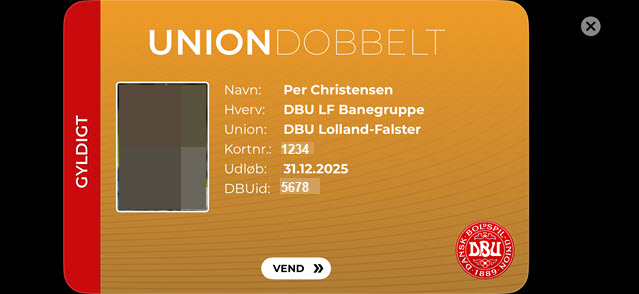 Derudover findes der et dommer adgangskort, som kun giver adgang for dommeren selv. Det ser således ud: