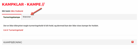 Der er under menuen kampe kommet en ny fane med 'Stævner' - sådan at der nu er to faner én med Turneringskampe og én med Stævner