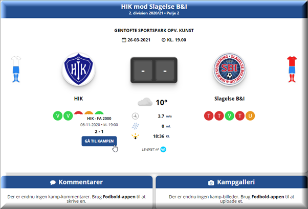 I den nyeste version af Klub-CMS er der - foruden vejrudsigt, form fra de seneste fem kampe og galleri - også sat klubbernes spilledragter, kampfakta og kommentarer på kampsiden.