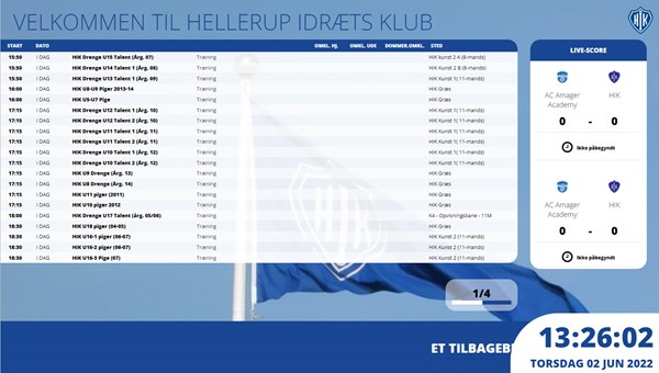Hvis I skal til at starte med at lave en infoskærm via Klub-CMS i jeres klub, kan du finde et webinar med tidskoder til de enkelte funktioner her.