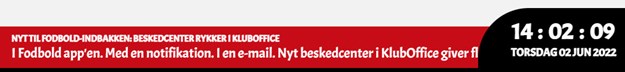 Der er også nye mulighed for dem, der gerne vil gå i detaljen med deres infoskærm. Efter opdateringen af Klub-CMS er der således mulighed for at tilpasse størrelsen på uret i bunden - eller helt fravælge at vise det. Desuden kan man tilpasse skriftstørrelse og størrelse på bundbar.