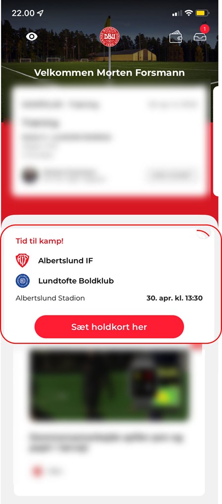 Hvis holdkortet ikke er udfyldt, kan du også møde kampen allerede på forsiden:
